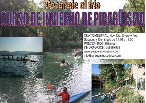 El Club convoca cursos para los próximos cuatro meses. No solo se puede practicar piragüismo en los meses de verano. El Curso estará destinado a adultos y se realizará los fines de semana de 11:30h a 13:00h durante los meses de noviembre, diciembre, enero y febrero. El precio del curso será de 100 euros (25€/mes). PLAZAS LIMITADAS Más información en apartado de cursos y en info@piraguismocuenca.com Tf. 658387878 ¡DESAFÍA AL FRÍO! |