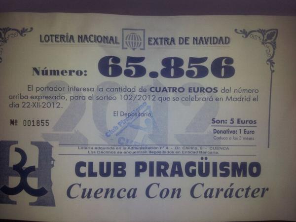 El número es el de siempre 65856. Las participaciones son de 5 euros e incluyen 1 euro de donativo. Todo aquél que quiera adquirir alguna participación puede contactar en cuenca@fcmp.es o pasarse por el Club en el horario de instalación, Lunes-Viernes 14:00h-18:00h y fines de semana/festivos de 11:00h a 14:00h. Muchas gracias por vuestra colaboración. |