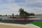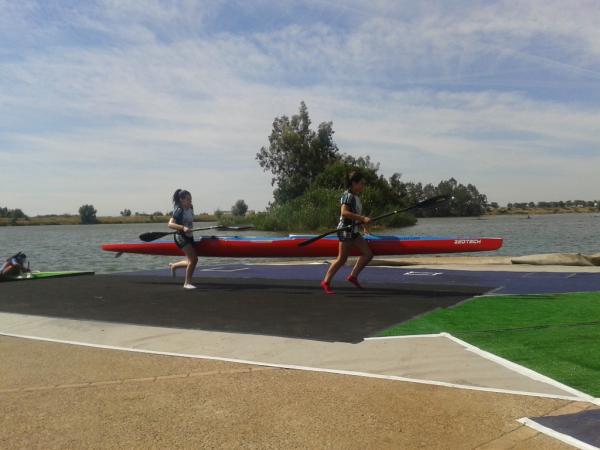 Dos oros, un plata, un bronce, un quinto puesto por equipos e Isabel López Pinós clasificada para el Campeonato de Europa y el Campeonato del Mundo, son el extraordinario bagaje conseguido en el Campeonato de España de Badajoz. El pasado fin de semana se vivió en Badajoz el Campeonato de España más fructífero en los que haya participado el Club Piragüismo Cuenca desde su nacimiento. Con un joven equipo de 18 palistas, de los que la mitad de sus miembros pertenecían a la categoría cadete, el Cuenca con Carácter demostraba en las aguas del Guadiana su magnifica proyección en este deporte y su prometedor futuro con las emocionantes carreras de sus esforzados palistas en la modalidad de maratón. La prueba se desarrolló bajo la estupenda organización a cargo del Club Deportivo Badajoz donde deportistas y aficionados estuvimos ayudados y atendidos por numerosos voluntarios, con unos servicios accesorios a los que no estamos acostumbrados en este deporte, desde la accesibilidad de los vehículos al servicio de masajistas, pasando por un elegante porteo, megafonía con un magnífico narrador, atención médica, servicio de bar, página web y otras muchas atenciones. En cuanto a lo deportivo, el campeonato se disputó sobre un circuito de más de 4 kilómetros y que incluía un larguísimo porteo de 200 metros por donde los participantes debían desembarcar y recorrer con su embarcación a cuestas bajo un sol de justicia. El número de vueltas al circuito variaba según las categorías hasta completar desde los 13 kilómetros de los cadetes a los 30 kilómetros de la categoría senior. La dureza de esta modalidad pasó factura a buena del equipo conquense. Retiradas, roturas de embarcaciones o llegadas a meta fuera de control con sus participantes extenuados fueron la parte amarga del equipo y que ensalza los éxitos de los compañeros que triunfaron en la contienda. Aunque sin medalla, vivimos brillantes carreras como la del k-2 cadete de Carlos Julio Gómez y Miguel Melgarejo que finalizaron en 5º lugar tras un inicio titubeante pero que fueron ganando en confianza en los porteos y logrando un gran puesto en su estreno en maratón. El junior Pablo Toledo aprovechando su extraordinaria salida se colocaba en cabeza aguantando buena parte de la prueba con posibilidades de medalla pero al final quedaba cortado en un segundo grupo entrando en meta 10º. Finalizada esta carrera se daba la salida a los Senior y Sub-23 con la participación de José Oscar Osma en C-1, y Elena Baeza en K-1. Nuestro canoísta entraba 7º perdiendo el 5º puesto en el sprint final tras completar 26 kilómetros de angustiosa competición, mientras que Elena quedaba 4ª, siendo descolgada muy pronto de la cabeza y padeciendo en solitario tan dura prueba. El sábado por la tarde empezaba la cosecha. A las 16:30 salían los cadetes. Como siempre, con una salida explosiva tratando de ir en cabeza y en agua limpia, las piraguas se perdían de vista aguas arriba hacia el Puente Real. Tras una tensa espera de incertidumbre aparecían las primeras embarcaciones agrupadas y levantaban la algarabía de los aficionados esperando ver el comprometido porteo con el que se completaba la primera vuelta. Víctor Pardo llegaba en cabeza rodeado de rivales pero desembarcaba sin problemas, piragua en mano y carrera ligera, bien colocado al final del porteo, embarcando sin problemas escapándose junto a dos rivales más, confeccionándose un selecto grupo de 3 piraguas entre quienes se repartirían las medallas. El desenlace se produjo al final de la carrera. La embarcación valenciana de Silla destacaba llegando la primera, a la estela Victor Pardo se hacía con la plata a menos de un segundo de su rival vizcaíno de Getxo. Pero aún faltaban 2 medallas más por llegar en esta categoría. Arantza Toledo y María Lopez partían como favoritas en K-2, título que pusieron de manifiesto desde la salida aunque escoltadas hasta el último porteo por el K-2 del Gaitero de Villaviciosa, momento en que cedieron las asturianas dejando a las conquenses escapar entrando en meta en solitario como campeonas de España. Un par de minutos después llegaba la tercera alegría del equipo conquense, porque el K-2 de Lucía Hernandez y Lucía Sáiz, que en los entrenamientos en el Júcar parecían tener problemas de acoplamiento, encontraron la armonía en el Guadiana, mostrándose en competición como una embarcación sólida. El resultado fue la medalla de bronce y a menos de dos minutos de las asturianas. El domingo se abría con las categorías veteranos y junior. El K-2 de Alberto Lumbreras y Javi Morillas optaba a las medallas, intención que dejaron clara con una primera vuelta espectacular a un ritmo que los dejó en solitario aunque escoltados a 150 metros por la embarcación gallega del Club Fluvial O Barco, que poco a poco les fue comiendo terreno hasta alcanzarles. Llegaba la última vuelta y las cosas no estaban claras. Porteo rápido de los gallegos que los colocaba en cabeza pero los conquenses conseguían engancharlos y recuperar fuerzas a la ola, última ciaboga y nos jugamos la medalla al sprint. Javi y Alberto cambian de marcha y potentes se abren para desmarcarse, sometiendo a sus rivales y entrando con cierta comodidad en meta como campeones de España. Al mismo tiempo que los veteranos competía Isabel López Pinós en K-2 formando pareja con la madrileña del Club piragüismo Aranjuez Irene Martín para tratar de ganarse una plaza para el Europeo de Eslovaquia y el Mundial de Oklahoma. Isabel venía de competir el día anterior y realizar una excepcional carrera en la que estuvo con opciones de medalla hasta el final: después de 20 kilómetros y 4 porteos impecables, entraron tres embarcaciones en menos de un segundo, en un emocionante sprint que relegaba a nuestra tenaz juvenil a la 5ª posición. Contenta y satisfecha por su regata el domingo aguardaba el día grande. Irene e Isabel preparaban su embarcación y se las v