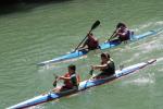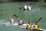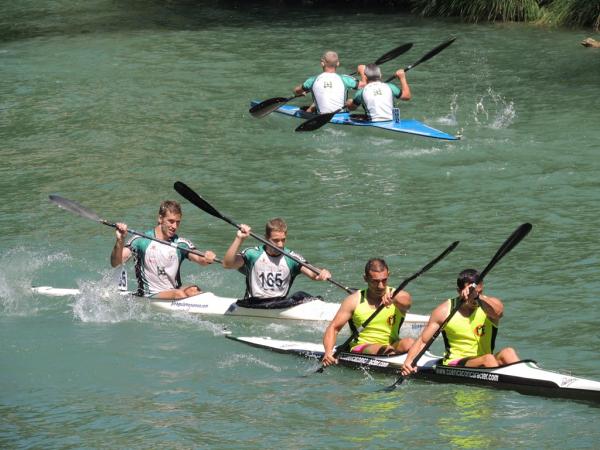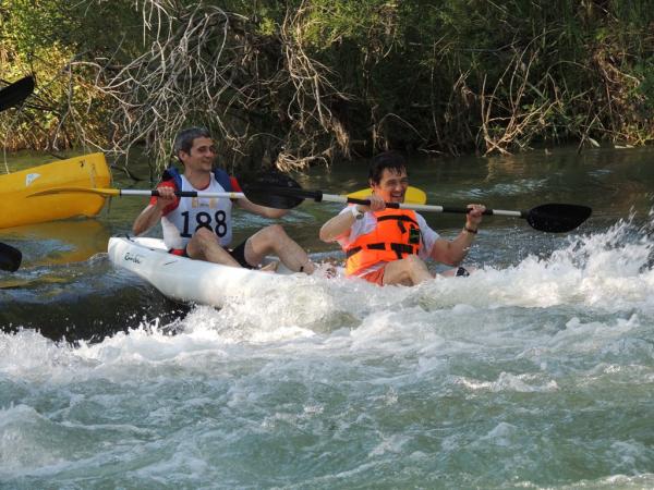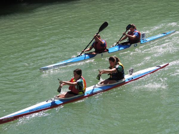 Las dos competiciones hicieron la delicia de todos los conquenses. El descenso popular todo un éxito. Durante todo el pasado fin de semana el piragüismo, en sus diferentes modalidades, fue el deporte protagonista en las riberas del Júcar a su paso por la ciudad y en los tramos superiores del río. Desde las primeras horas del sábado por la tarde los aficionados a este deporte se daban cita en las inmediaciones del Club de Piragüismo “Cuenca con carácter”, en el paraje de las Grajas, donde iban a tener lugar las regatas correspondientes a las categorías inferiores. Palistas de Madrid, Castilla y León, Galicia, Valencia y Castilla la Mancha disputaron las diferentes pruebas, tanto en la modalidad de K1 como de K2. Finalizada esta primera parte de la competición, los participantes en el I Descenso del Júcar, modalidad competitiva, iban tomando posiciones en sus respectivos lugares de salida (el Chantre y la Torre) según la categoría de los participantes. Destacar en este punto el gran trabajo organizativo debido a la complejidad de la prueba, sobre todo en cuanto a la logística del traslado de participantes y embarcaciones a los diferentes puntos de comienzo de la regata, que se inició sobre las 18.00 horas. El abundante caudal del río ponía a prueba continuamente la pericia de los palistas para sortear los obstáculos que el recorrido les deparaba en los tramos más complicados. Una vez sobrepasada la playa del Chantre por la última de las embarcaciones competitivas, se daba el pistoletazo de salida al Descenso Popular. Altísima participación de aficionados que subieron en las embarcaciones dispuestos a disfrutar del magnífico entorno que el río les brindaba. Todo un acierto, según los organizadores y los participantes. El domingo se daba continuidad a la fiesta del piragüismo en Cuenca cambiando de escenario, en esta ocasión, al tramo del río Júcar que discurre por la ciudad entre los Puentes de San Antón y de Los Descalzos, donde se iba a disputar el Campeonato de CLM federado para embarcaciones K-2 y K-4, abierto a otras comunidades autónomas. Un espectáculo digno de admirar para todos los asistentes fue el ver a las embarcaciones estrella del piragüismo disputar unas reñidas regatas. Además del aspecto competitivo, el dar a conocer esta modalidad por primera vez en Cuenca era uno de los objetivos para los organizadores de la prueba. Todo este complejo evento deportivo se ha podido desarrollar gracias a la colaboración e implicación desinteresada de muchos socios del Club de Piragüismo “Cuenca con carácter”, organizador de la prueba junto con la Delegación Provincial de la Federación Castellano-Manchega de Piragüismo en Cuenca, además de la colaboración de instituciones públicas y privadas como el Excmo. Ayuntamiento de Cuenca, GEAS Guardia Civil, Gas Natural Fenosa, Hidroeléctrica La Torre, Fundación Globalcaja, Cuencaventura, Geaventura, Serranía Activa, Restaurante El Refugio del Júcar, Camping Caravaning Cuenca, Fuente Liviana, Coca-Cola, Club Atletismo Cuenca y Reale Seguros. El patrocinio corrió a cargo de la Junta de Comunidades de Castilla-La Mancha y de la Excma. Diputación Provincial de Cuenca. Enlace a noticia RTVE (minuto 18,30):