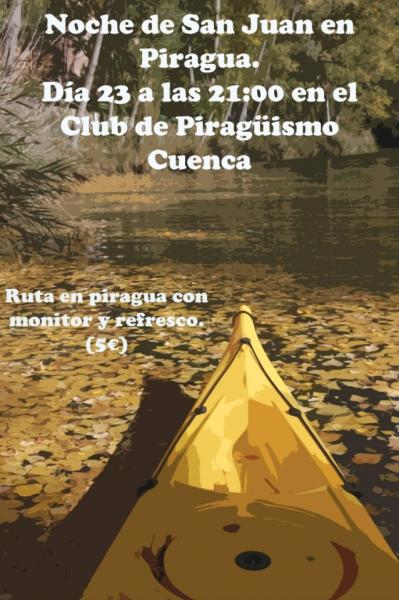 El Club Piragüismo Cuenca con Carácter celebrará el próximo día 23 de Junio a las 21,00h la Noche de San Juan en las instalaciones situadas en el Km 3 de la Carretera CM 2105 Villalba de la Sierra-Tragacete