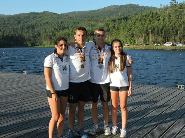 Pablo Toledo y Víctor Pardo, a escasas dos semanas para el Mundial de Portugal, se convierten en dos de las figuras destacadas en el Campeonato de España de Pontevedra El EQUIPO JUVENIL DEL CLUB PIRAGÜISMO CUENCA CON CARÁCTER CONSIGUE 4 OROS EN EL CAMPEONATO DE ESPAÑA DE PISTA. El pasado fin de semana tuvo lugar el Campeonato de España de Pista para Juveniles y Sénior en Berducido (Pontevedra) donde el Club Piragüismo Cuenca solo desplazó a cuatro palistas juveniles para realizar las pruebas de 1000m, 500m y 200m. Las carreras empezaban el viernes, a primera hora de la mañana le tocaba competir en la distancia de 1000m a las chicas. Isabel López consiguió clasificarse para pasar a la final A donde acabó en sexta posición, mientras que su compañera Lucía Saiz se quedó a las puertas de entrar en la final. Más tarde era el turno de Víctor Pardo que se clasificó para la final A, aquí logró un luchado segundo puesto en la distancia de 1000m. Y también un primer puesto en la categoría sub17. Tras una parada para comer daban comienzo las pruebas de 500m K-1 donde solo competía Isabel Lopez, quien consiguió un noveno puesto en la final A. El sábado era el turno de los barcos de equipo. Por la mañana competían Isabel López y Lucía Saiz sobre la distancia 1000m, que lograban meterse a la final A y conseguir un cuarto puesto. Por la tarde Victor Pardo y Pablo Toledo conseguían un merecidísimo primer puesto en 500m. Mientras que Isabel López y Lucía Saiz obtuvieron un séptimo puesto en la final A. El último día del campeonato, domingo, había que disputar la distancia de 200m. Primero era el turno de Pablo Toledo en k1, quien consiguió ganar la carrera y obtener el primer puesto. Más tarde era el turno de las chicas en K2, que lograban meterse a la final A y acabar séptimas.Y por ultimo les tocaba de nuevo a Pablo Toledo y Víctor Pardo en K-2, quienes volvían a lograr la victoria llevándose otro oro bien merecido. 9 finales A, 4 oros y 1 plata era el balance conseguido por el Club Piragüismo Cuenca con Carácter que obtenía un 22 puesto en la clasificación por clubs en el Campeonato, con tan solo 4 deportistas.