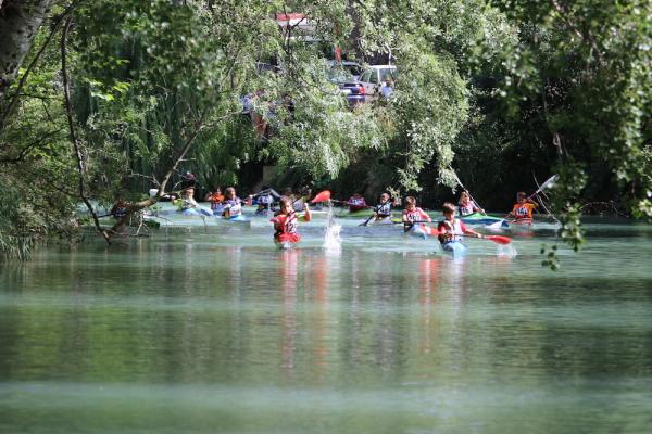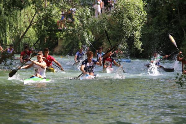 El pasado domingo se celebró en la ciudad de Cuenca la XV edición de la Puente a Puente. Un total de de 275 palistas provenientes de 15 clubes de Murcia, Comunidad Valenciana, Cataluña, Andalucía, Extremadura, Madrid y Castilla La Mancha se dieron cita un año más para disfrutar de esta ya tradicional jornada de piragüismo en Cuenca. Una vez más, el tramo de río comprendido entre el Puente de los Descalzos y el Puente de San Antón fue el lugar elegido para el desarrollo de esta singular prueba, caracterizada por ser una tabla de agua con un recorrido muy estrecho donde la destreza encima de la piragua juega un papel muy importante. Sobre las 10:30 comenzaba las primeras salidas correspondientes a las embarcaciones individuales en categoría senior y juvenil. Después fue el turno para las categorías inferiores donde los palistas cadetes, alevines y benjamines protagonizaron las carreras con mayor participación haciendo el deleite de los espectadores que se arremolinaban a lo largo de todo el recorrido. La última prueba correspondió a las embarcaciones dobles donde numerosas k2 dieron un gran espectáculo al ser las embarcaciones más rápidas. Durante la entrega de trofeos, podemos destacar la presencia de Borja García, representante de Cuenca con Carácter, patrocinador oficial del Club de Piragüismo Cuenca con Carácter, el Alcalde de Cuenca Angel Luis Mariscal, El Director Provincial de Educación,Jesús Martinez, representante de Gestión 5, colaborador del Club, Cultura y Deportes Amador Pastor, el Subdelegado del Gobierno Antonio Senis, el Diputado de Deportes Oscar Pinar, el Concejal de Deportes Jose María Martínez, Juan Ávila, Concejal del Ayto., Víctor Alijas, Concejal del Ayto., y Myriam Pulido y Henar de Fundación Globalcaja