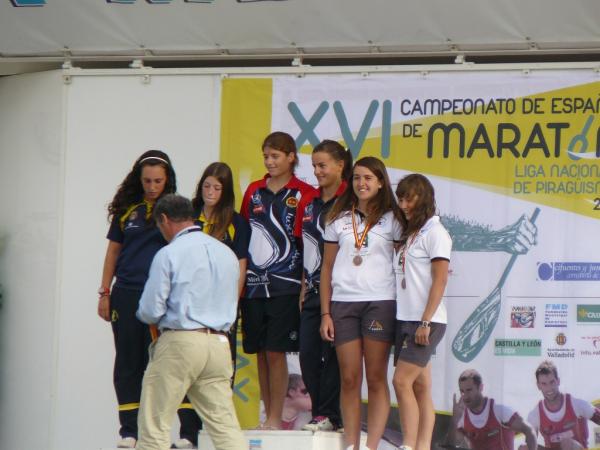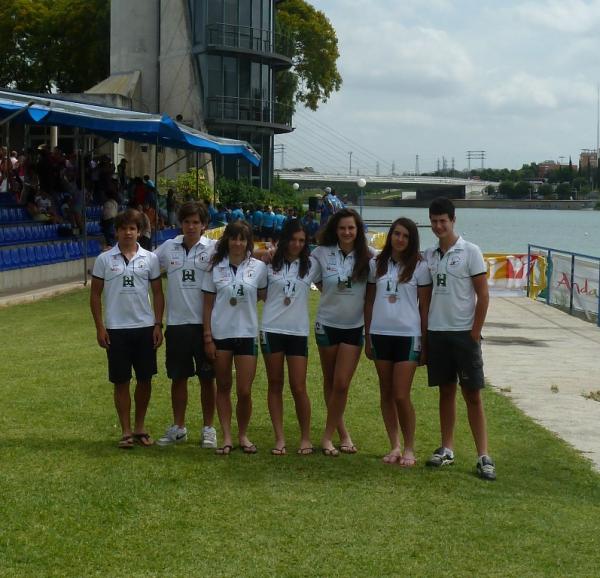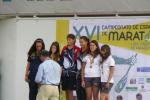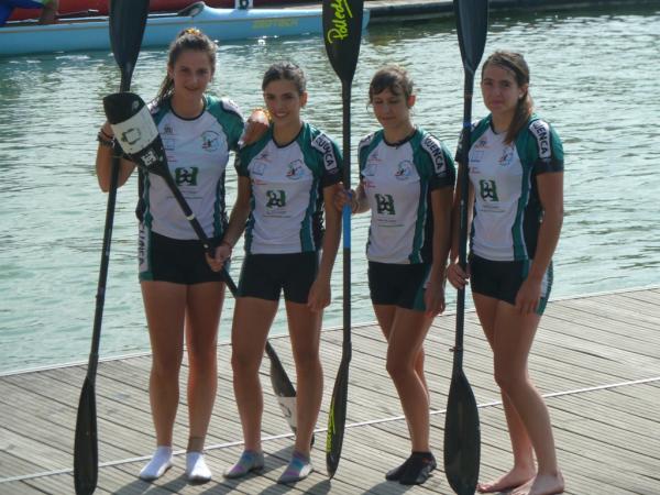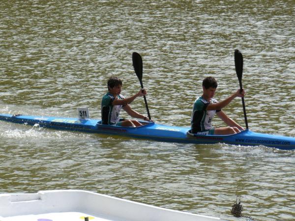 Grandes los resultados conseguidos tanto por los cadetes en Sevilla, con medalla de bronce incluida, como por todo el equipo desplazado a Valladolid, con un meritorio 11º puesto en la clasificación general por equipos y otra medalla de bronce. PIRAGÜISMO. CTO. DE ESPAÑA DE MARATÓN. VALLADOLID Más de 700 palistas y cerca de 90 clubes se dieron cita el pasado fin de semana en la Playa de las Moreras para disputar la prueba de maratón más importante y dura del año: el Campeonato de España de Maratón, que celebraba su XVI edición. La buena temperatura y unas inmejorables condiciones facilitaron un campeonato que estuvo muy reñido desde el primer día con presencia de los miembros del equipo nacional, no obstante estaban en juego las plazas para el Europeo de la especialidad. El Club Piragüismo Cuenca con Carácter desplazó un equipo de 17 palistas repartidos entre las diferentes categorías con opciones a podium en varias de ellas. El gran estado de forma de los conquenses convertía el Campeonato de España en uno de los principales objetivos de la temporada. En la jornada del sábado se diputaron todas las pruebas individuales de canoa y kayak, y también las dobles de la categoría cadete. La jornada del domingo se reservó para los K-2 y C-2 en categoría junior y senior. La organización dispuso un recorrido circular por el centro de Valladolid con un número variable de vueltas y de porteos en función de las categorías, 13 km y 3 porteos para los cadetes, 21,5 km y 5 porteos para los junior y veteranos, 26 km y 6 porteos para los C-1 Senior, y 30 km y 7 porteos para los senior. Los resultados del Club Piragüismo Cuenca con Carácter fueron excepcionales destacando sobre el resto la medalla de bronce cosechada por el K-2 Mujer Cadete, formado por Elena Baeza Hernanz y Marian Hernández Vellisca y el 11º puesto conseguido en la clasificación general por equipos resultado de la suma de las puntuaciones individuales. Ayudó bastante que otras 8 embarcaciones se situasen entre los diez primeros clasificados, algunas cerca de los puestos de honor, como es el caso del cuarto puesto obtenido por el K-2 Cadete de Alejandro López Barambio y Pablo de Miguel Herraiz, a los que les faltaron algunos kilómetros. Destacables también otras actuaciones como las protagonizados por los juveniles, Pablo Baeza (8º) e Iñaki de Miguel (11º), de José Óscar Osma (7º) en Senior C-1, que finalizó su primer maratón, y del K-2 Senior de Fco. Javier Morillas y Alberto Lumbreras (8º) que se codeó con los mejores a lo largo de toda la prueba, quizás en el Campeonato con más nivel de la historia con presencia de los campeones y subcampeones del mundo. El resto del equipo en su línea, el único percance del equipo conquense fue el sufrido por el K-2 Juvenil de Pablo Baeza e Iñaki de Miguel, que doblaron distancia, y que tuvieron que retirarse por problemas en el timón, cuando su situación en carrera les situaba en la lucha por las medallas. Resultados 3º Elena Baeza Hernanz/Marian Hernández Vellisca (K-2 Mujer Cadete) PIRAGÜISMO. COPA ESPAÑA CADETES 1000M. SEVILLA Los días 28 y 29 de Mayo el Club Piragüismo Cuenca con Carácter se desplazó a Sevilla con 6 cadetes para disputar la Copa de España de Cadetes sobre la distancia de 1000m. Las instalaciones del CAR de la Isla de la Cartuja aseguraron el éxito de un campeonato que reunió a más de 500 palistas de 58 clubes de toda la geografía nacional. Excepcionales los resultados de los jóvenes palistas conquenses que suman un nuevo podium en prueba nacional para el Club Piragüismo Cuenca con Carácter, con un tercer puesto del K-4 formado por Lucía Huerta/Carmen López/Elena Baeza/Marian Hernández. Gran resultado también para Lucía Huerta Tébar, en K-1 Mujer Cadete B, con un sexto puesto en la final que le sirve para ser convocada por la Real Federación Española de Piragüismo a la concentración nacional de cadetes de finales de junio, de Carmen López Pinós, cuarta en la final B de Mujer Cadete A, y de Elena Baeza y Marian Hernández, que obtuvieron un 7º puesto, también en la final B de Mujer Cadete K-2. 3ª Lucía Huerta/Carmen López/Elena Baeza/Marian Hernández (K-4 Mujer Cadete) Próxima competición Este sábado el Club Piragüismo Cuenca con Carácter sigue con su apretada agenda veraniega con el desplazamiento a la localidad valenciana de Algemesí para disputar su tradicional prueba. Será turno para los más pequeños del club conquense.