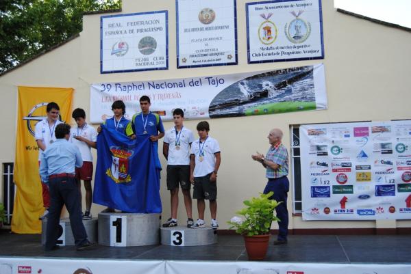 El resto del equipo, no sin percances, logró terminar la prueba sumando los puntos necesarios para conseguir lo que desde hace mucho tiempo se estaba persiguiendo en el piragüismo en Cuenca. La espera se hizo por momentos angustiosa, los jueces tardaban demasiado por lo que se deducía que la clasificación por equipos estaría muy apretada. Por fin, la expedición conquense estalló de júbilo, tercer puesto para el Club Piragüismo Cuenca con Carácter con solo 4 puntos de diferencia sobre los gallegos del Club As Torres de Catoira, y por delante del Piraguamadrid y del Club Villaviciosa-El Gaitero.