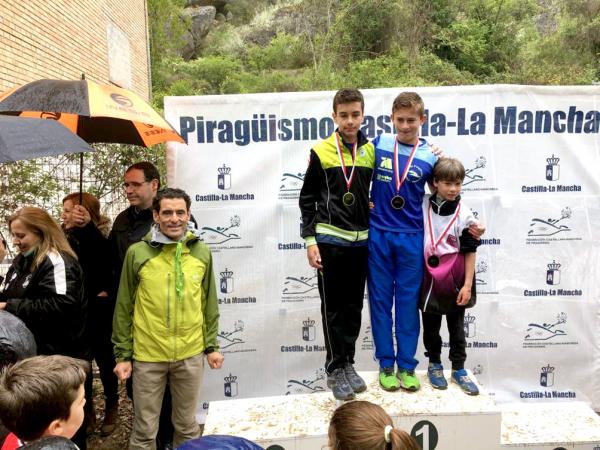 El Club Escuela de Piragüismo Aranjuez se hizo con el triunfo, seguido del Club Piragüismo Cuenca con Carácter y el Club Madrileño de Piragüismo Ciencias 01-05-17.- La lluvia y el frío reinante a lo largo de la jornada del sábado, 29 de abril, no fueron suficientes para aguar la fiesta del piragüismo convocada en las proximidades de Cuenca capital con la celebración del X Trofeo de Piragüismo ‘Diputación de Cuenca’, Campeonato Abierto de Jóvenes Promesas de Castilla-La Mancha, organizado por la Delegación en Cuenca de la Federación Castellano-Manchega de Piragüismo y el Club Cuenca con Carácter con el patrocinio de la institución provincial. No en vano, se dieron cita en la zona de Las Grajas, en el río Júcar, un total de 190 embarcaciones de ocho clubes de las comunidades autónomas de Castilla-La Mancha, Madrid y Comunidad Valenciana, que disputaron las distintas pruebas en las categorías Prebenjamín, Benjamín, Alevín, Infantil y Cadete, tanto en modalidad masculina como femenina. Al final, en el lugar más alto del podio se situó el Club Escuela de Piragüismo Aranjuez, que se hizo con el triunfo en esta décima edición al lograr 720 puntos, seguido del Club Piragüismo Cuenca con Carácter, con 643 puntos, y el Club Madrileño de Piragüismo Ciencias, con 448. Completaron la clasificación el Club Piragüismo Castellón (335 puntos), el Club Piragüismo Talavera-Talak (234 ptos.), el Club Piragüismo Silla (213), el Club Piragüismo Scooter-Algemesí (195) y, en último lugar, el Club de Piragüismo Canal Getafe (55). El oro de Mario Rubianes, en K1 categoría Benjamín B; el oro de Sergio Jiménez Espejo, en K1 Infantil B; la plata de Víctor Martínez Monteagudo, en k1 Infantil A; el bronce de Víctor Martínez y Luis F. Navarro, en K2 Infantil; el bronce de Victoria Sánchez Lumbreras, en K1 Benjamín A; los oros de María Lucas Martínez y Celia Toledo, en K1 Cadete A y B, respectivamente; las platas de Estrella Chaves Sánchez y Coral Bayo Monedero, también en K1 Cadete A y B; el oro de Rocío Bayo Monedero, en K1 Infantil B; el oro de Nora del Olmo Díaz, K1 Prebenjamín; el oro de la pareja Celia Toledo y Coral Bayo, en K2 Cadete; y la plata del tándem Eva Sevilla y Estrella Chaves, en K2 Cadete, fueron los mejores resultados obtenidos por los palistas del club conquense. En total, trece medallas, de las que siete fueron de oro, cuatro de plata y dos de bronce. A la ceremonia de entrega de medallas no faltó el presidente de la Diputación Provincial de Cuenca, Benjamín Prieto, la Subdelegada del Gobierno en Cuenca, María Lidón, el Delegado de la JCCM en Cuenca, Ángel Tomás Godoy, y el Concejal de Deportes del Ayuntamiento de Cuenca, Ángel Llorens, que quisieron acompañar a estas jóvenes promesas del piragüismo no solo regional, sino también nacional, después del intenso campeonato celebrado en aguas del Júcar.