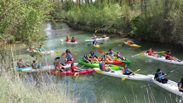 Una treintena de estudiantes y tres profesores del centro motillano realizaron un descenso de unos siete kilómetros de longitud por el río Júcar con la ayuda de varios miembros del Club de Piragüismo Cuenca