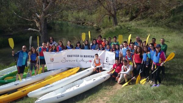10-05.17.- Un grupo de alumnos del IES Jorge Manrique de Motilla del Palancar han podido disfrutar de una jornada de piragüismo en aguas del Júcar gracias al Programa Somos Deporte 16-18, que organizan conjuntamente la Junta de Comunidades de Castilla-La Mancha y la Diputación Provincial de Cuenca.