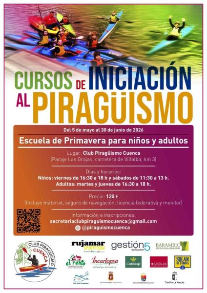Las clases, que organiza el Club Piragüismo Cuenca, están dirigidas tanto a adultos como niños y tendrán lugar durante los meses de mayo y junio. Para apuntarse basta con escribir al email: secretariaclubpiraguismocuenca@gmail.com